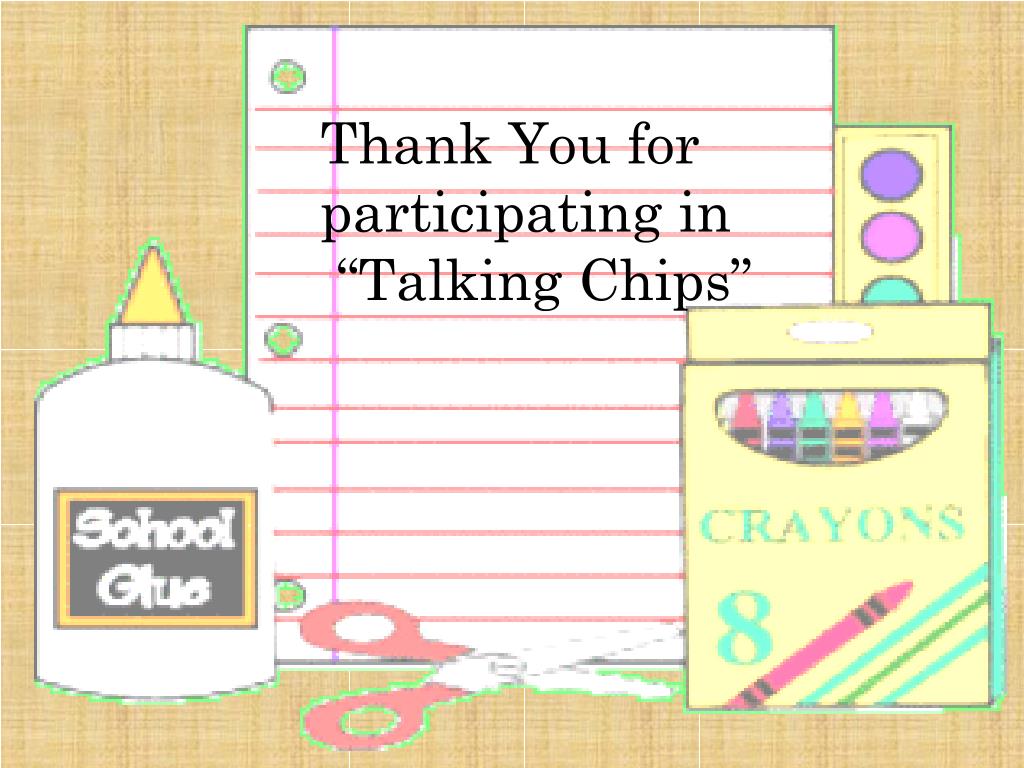 Advantages • Keeps one student from • monopolizing the discussion. • All students have an • opportunity to talk. • If a student has trouble • beginning the conversation, • they can toss in their chip • and say “Let’s get started.” • If a student is long winded • another student can toss in • their chip to begin their turn.