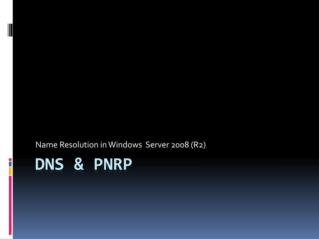 Name Resolution in Windows Server 2008 (R2). DNS & PNRP. Name Resolution Overview. NetBIOS name resolution Host name resolution Peer Name Resolution. Name Resolution Overview.