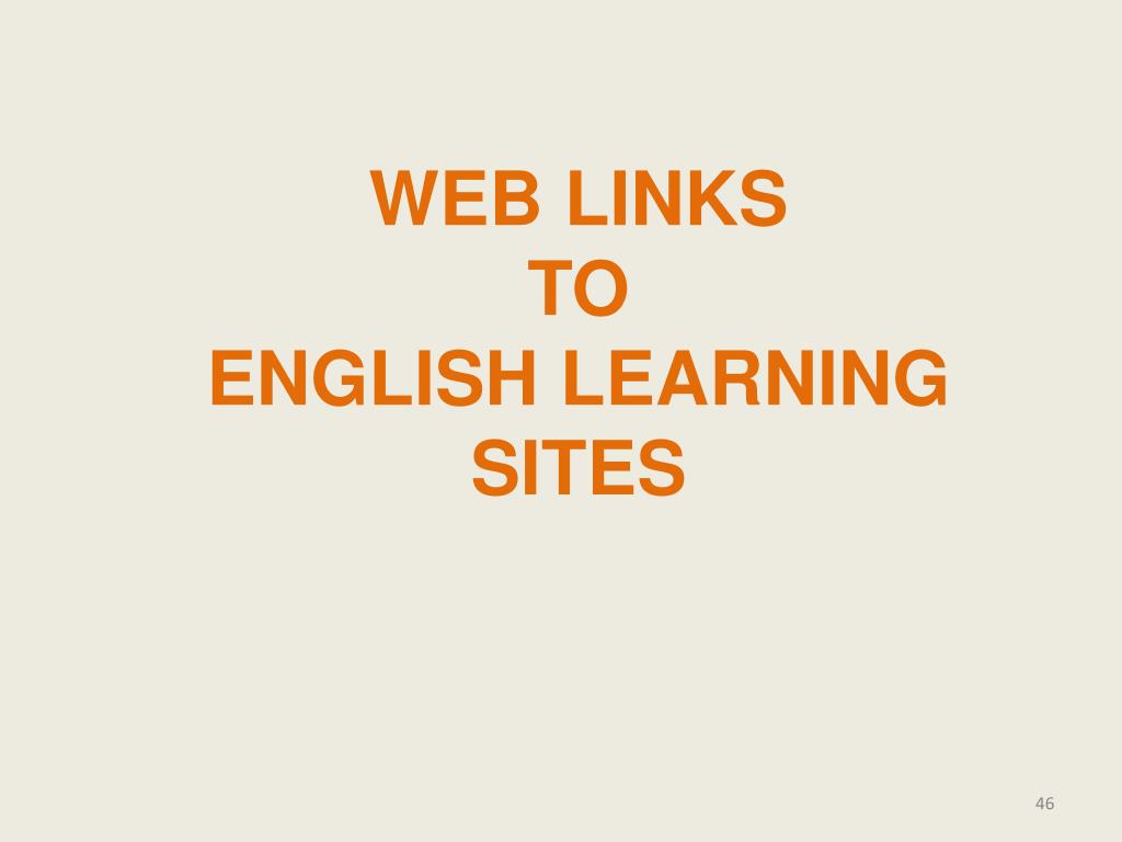 www.bbclearningenglish.com www.ManyThings.org www.shiporsheep.com www.cambridgeenglishonline.com www.oup.com/elt/global/products/englishfile www.simpleenglishnews.com www.eduplace.com/kids http://www.spokenskills.com/student-activities.cfm www.wordsift.com www.edmodo.com http://tv.mes-english.com www.mes-english.com/flashcards.php http://www.funfonix.com/worksheets/spelling_all1.php http://www.mescards.com/ http://www.eslgamesplus.com/fun-games/ http://www.youtube.com/user/mesenglish/featured