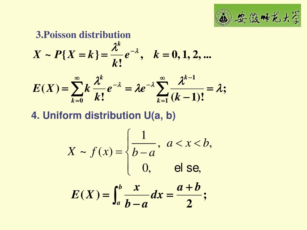 3.Poisson distribution 4. Uniform distribution U(a, b)