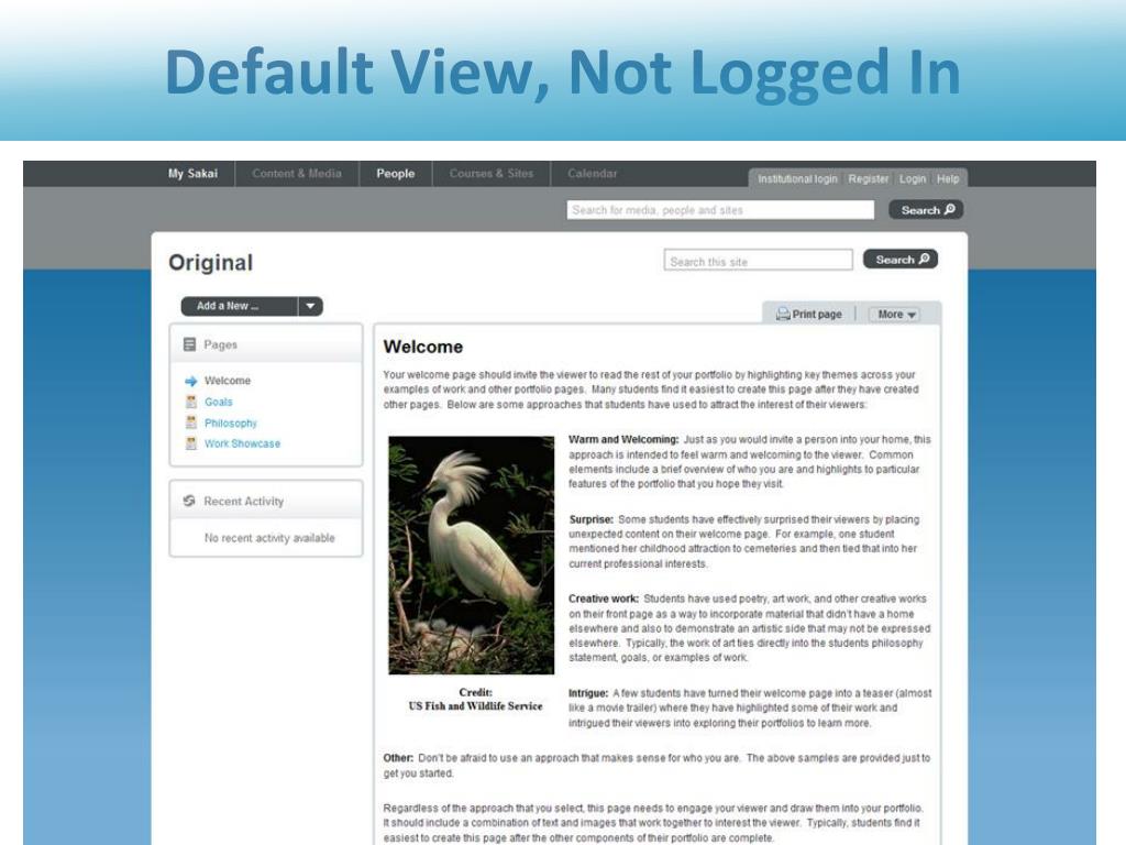 Expressive Presentation Portfolios Goal: For an external audience, the portfolio should look like a website, not a Learning Management System. Currently, default Sakai 3 sites look like part of an LMS. June 15-17 2010 Sakai Conference - Denver, CO, U.S.A.