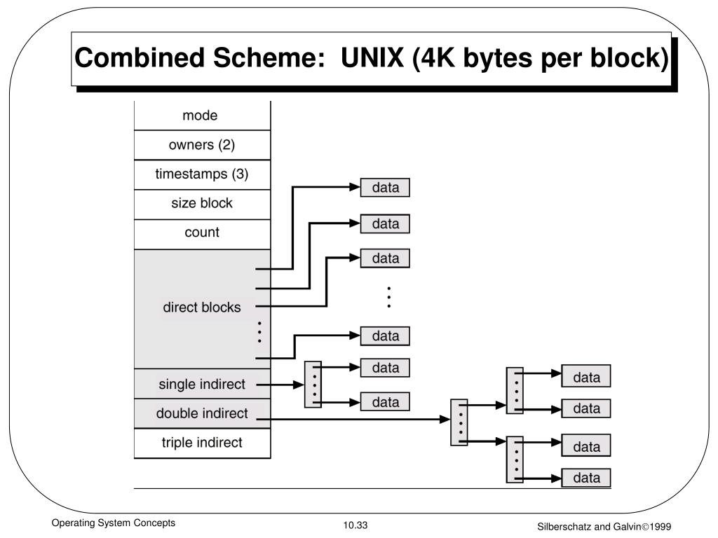 Combined Scheme: UNIX (4K bytes per block) Operating System Concepts