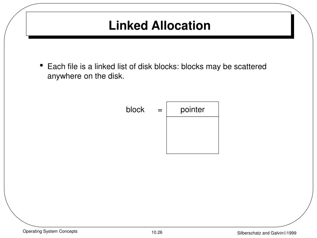 Allocate as needed, link together; e.g., file starts at block 9 Operating System Concepts