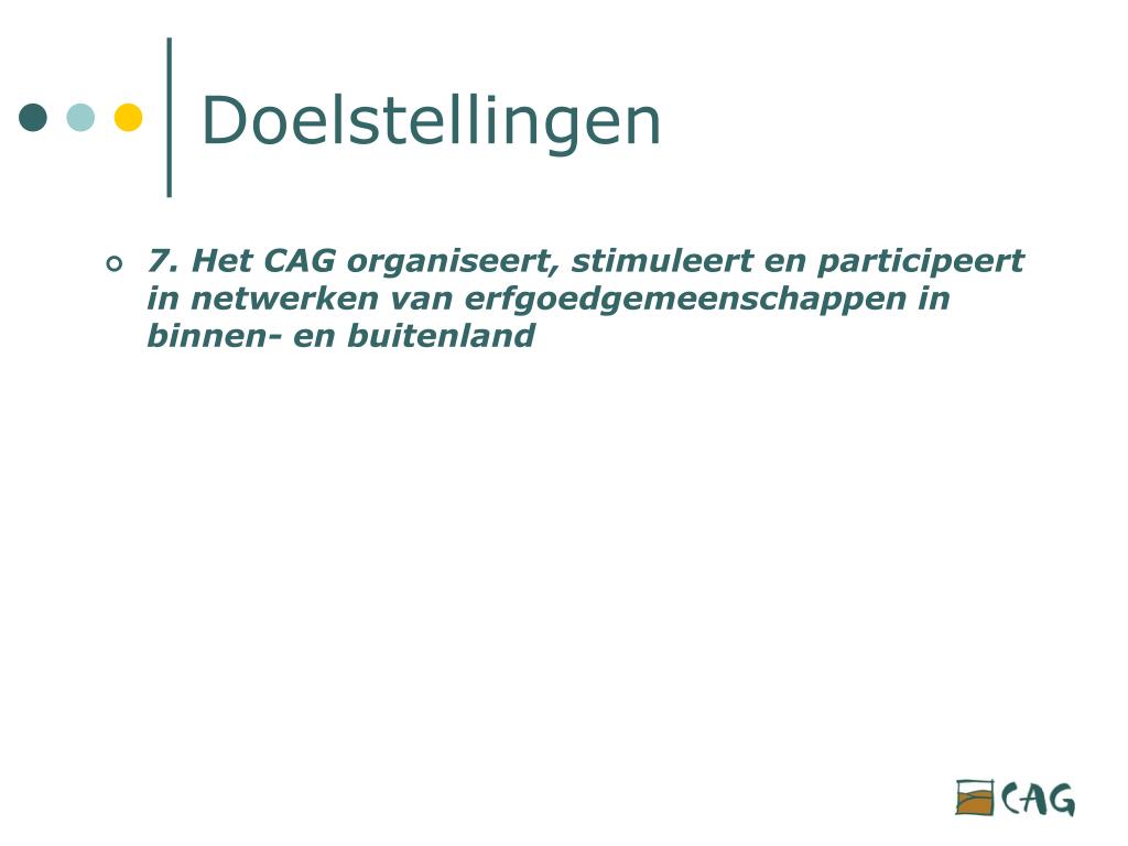 Doelstellingen • 7. Het CAG organiseert, stimuleert en participeert in netwerken van erfgoedgemeenschappen in binnen- en buitenland