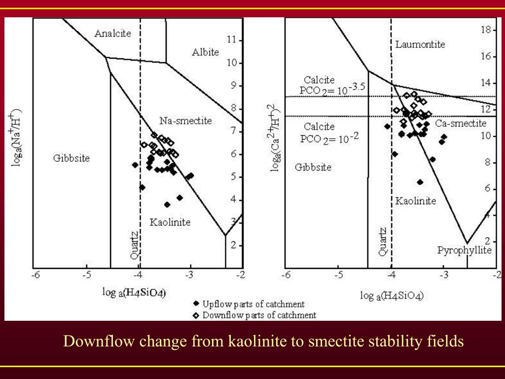 Decrease in Si/Cl ratio with increasing salinity (downflow) probably reflects reaction of groundwater silica with kaolinite to form smectites