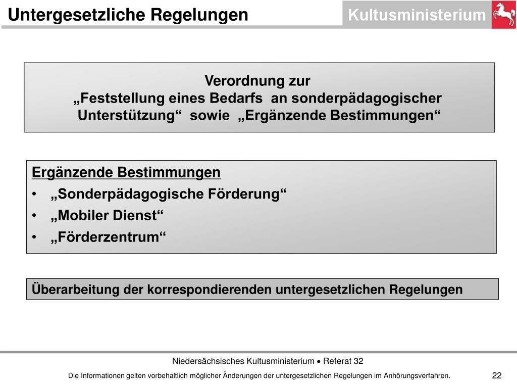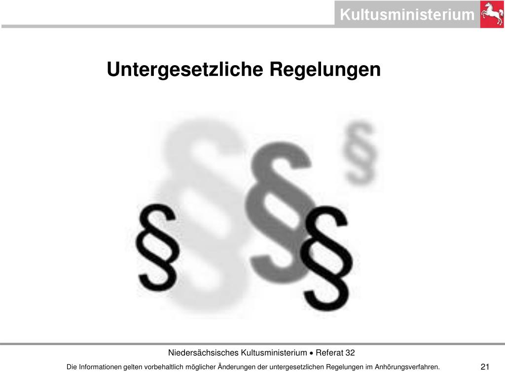 Untergesetzliche Regelungen 21 Die Informationen gelten vorbehaltlich möglicher Änderungen der untergesetzlichen Regelungen im Anhörungsverfahren.