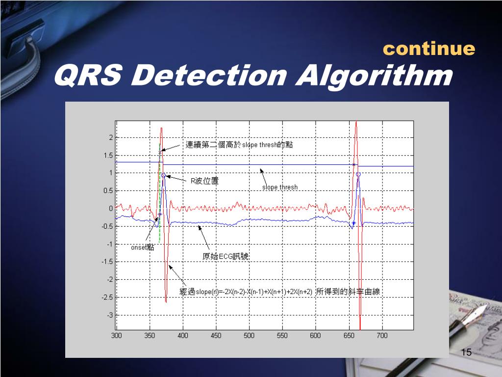 References • P. Jiapu and W. J. Tompkins., “A Real-Time QRS Detection Algorithm,” IEEE trans. on bio-medical engineering, Vol. 32, No. 3, pp. 230-236, March 1985. • G. M. Friesen, T. C. Jannett, et al., “A comparison of the noise sensitivity of nine QRS detection algorithms,” IEEE Trans. on Biomedical Engineering, Vol. 37, pp. 85- 98, Jane 1990. • K. F. Tan, K. L. Chan and K. Choi, “Detection of the QRS complex, P wave and T wave in electrocardiogram, “Processing of 2000 IEE Conference on Advances in Medical Signal and Information Processing, pp. 41-47, Sept 2000. • H.H. So and K.L. Chan, “Development of QRS detection method for real-time ambulatory cardiac monitor,” Proceedings of the 19th Annual International Conference of the IEEE in Engineering in Medicine and Biology society, Vol. 1, Oct. 1997, pp. 289-292.