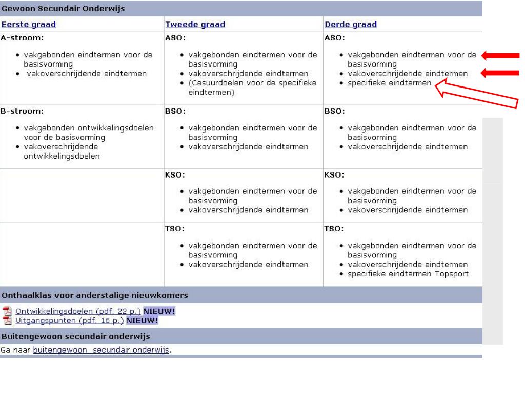 Zijn de eindtermen zoek? • Secundair → enkel basisvorming • Zedenleer → leerplannen • Hoger onderwijs → visitatierapporten → beroepsprofielen → DLR • DKO → Eindtermen lager onderwijs voor lagere graad→ Leerplannen voor hogere graden