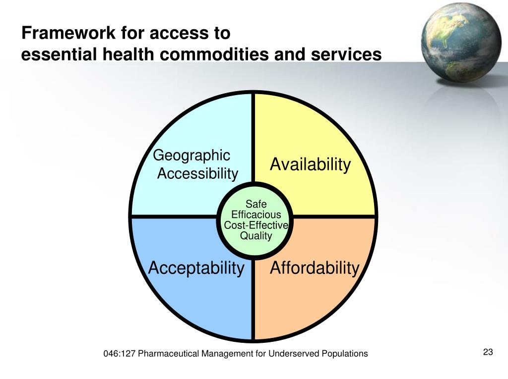 Framework for access toessential health commodities and services 046:127 Pharmaceutical Management for Underserved Populations