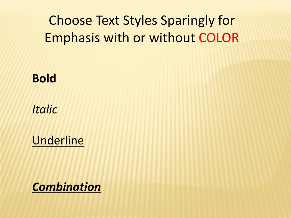 Choose Text Styles Sparingly for Emphasis with or without COLOR Bold Italic Underline Combination
