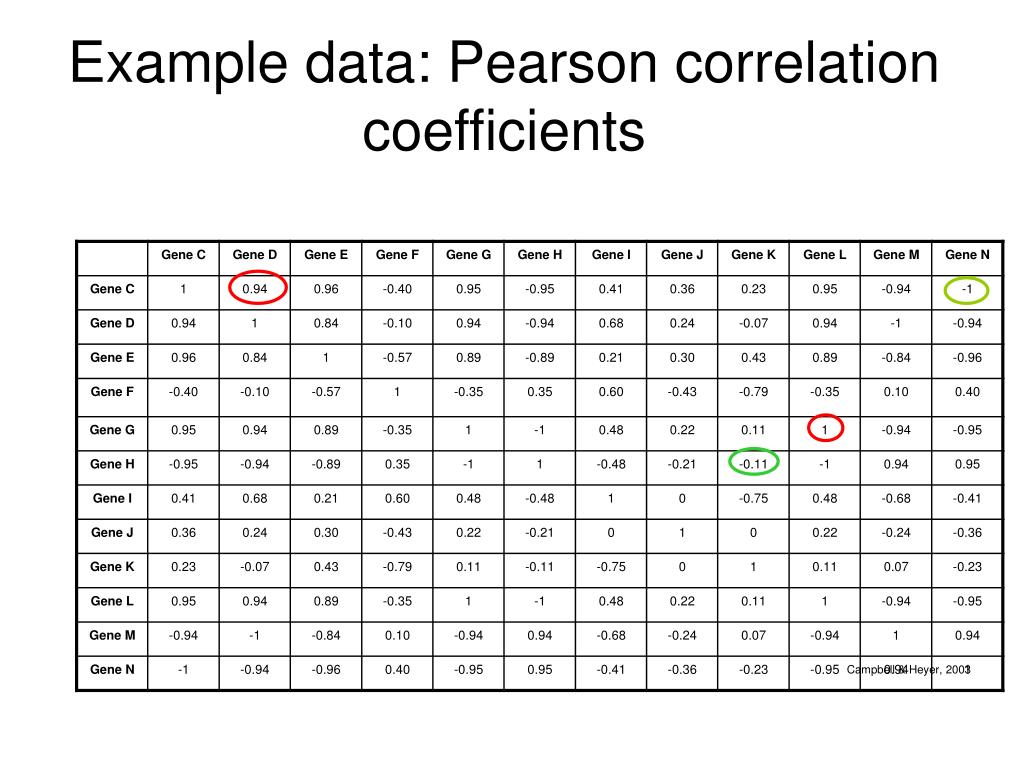 Example data: Pearson correlation coefficients Campbell & Heyer, 2003