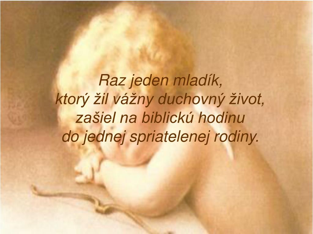 Raz jeden mladík, ktorý žil vážny duchovný život, zašiel na biblickú hodinu do jednej spriatelenej rodiny.