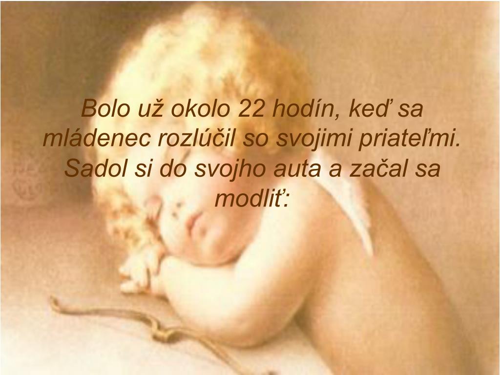 Bolo už okolo 22 hodín, keď sa mládenec rozlúčil so svojimi priateľmi. Sadol si do svojho auta a začal sa modliť:
