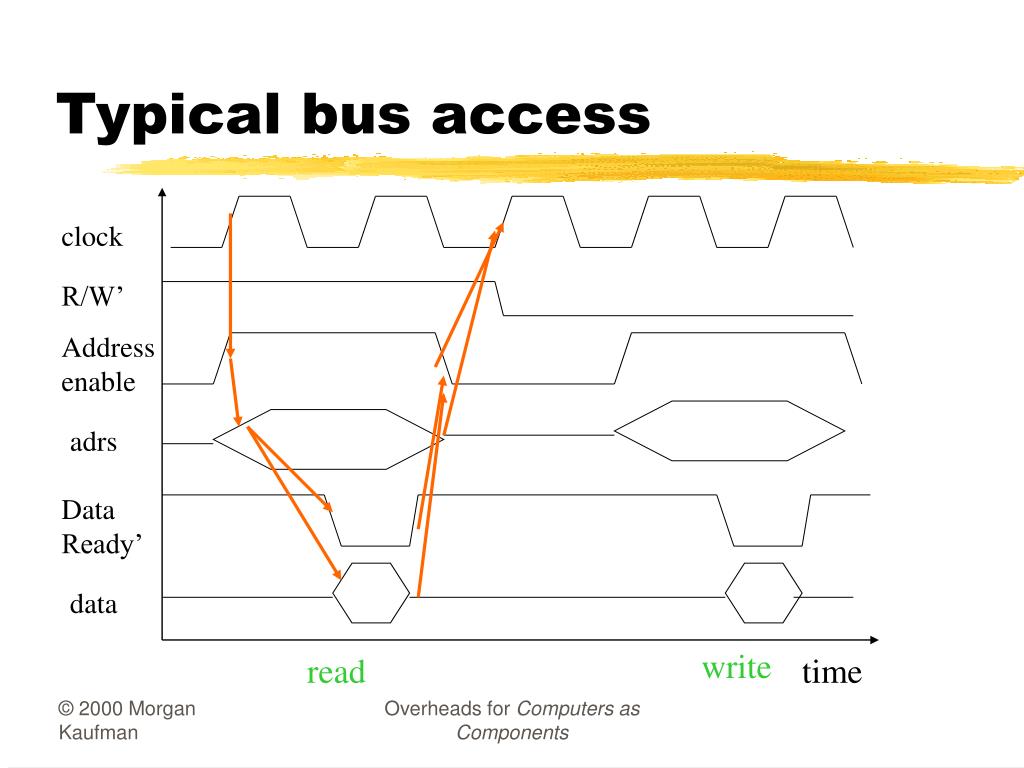 Typical bus access clock R/W’ Address enable adrs Data Ready’ data write read time Overheads for Computers as Components
