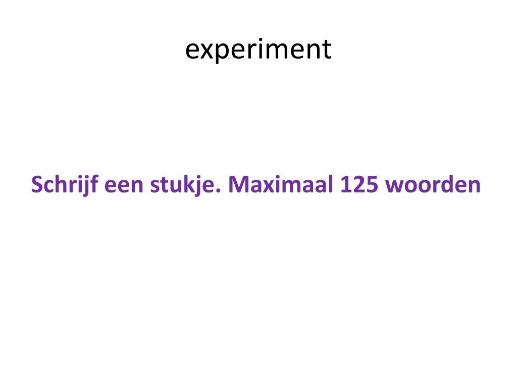experiment Schrijf een stukje. Maximaal 125 woorden