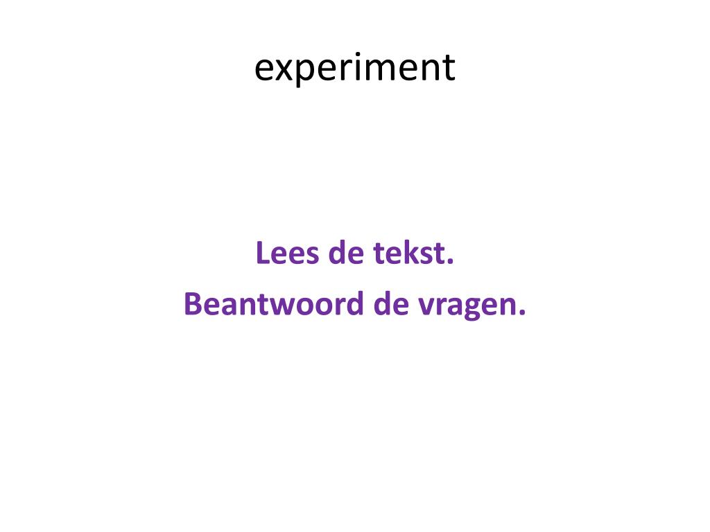 experiment Lees de tekst. Beantwoord de vragen.