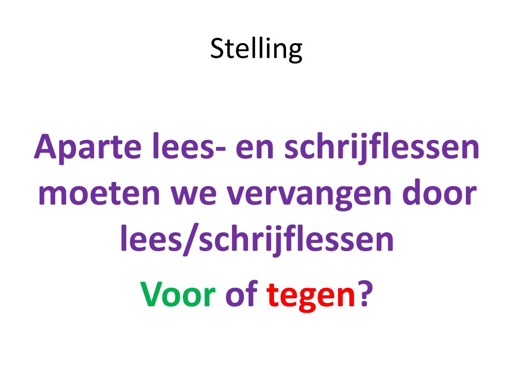 Stelling Aparte lees- en schrijflessen moeten we vervangen door lees/schrijflessen Voor of tegen?