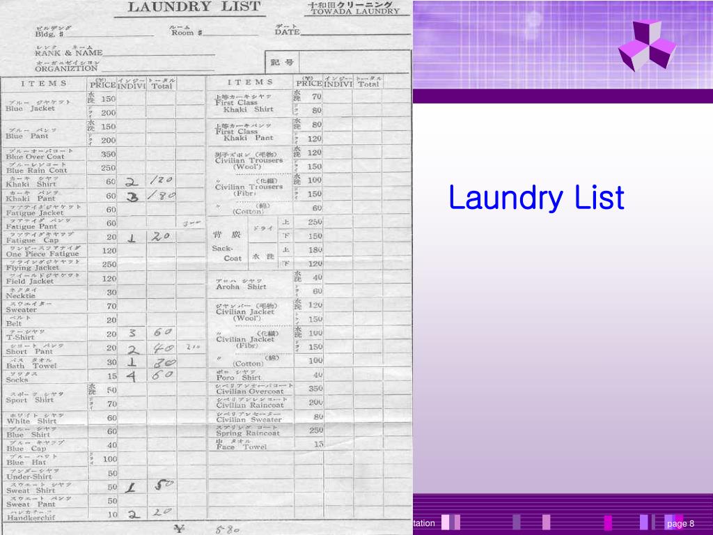 1. Functional Sentences 客衣收取 Any laundry today, madam? Excuse me, sir. Have you any laundry? Housekeeping, may I come in? The laundrywoman will come to collect your laundry. Could you fill out the laundry form, sir? Is this for pressing only, sir? If you have any laundry, please leave it the laundry bag behind the bathroom door.