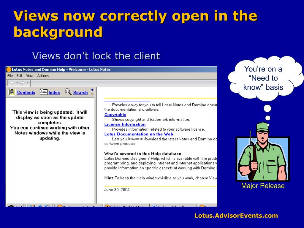 Views now correctly open in the background Views don’t lock the client You’re on a “Need to know” basis Major Release