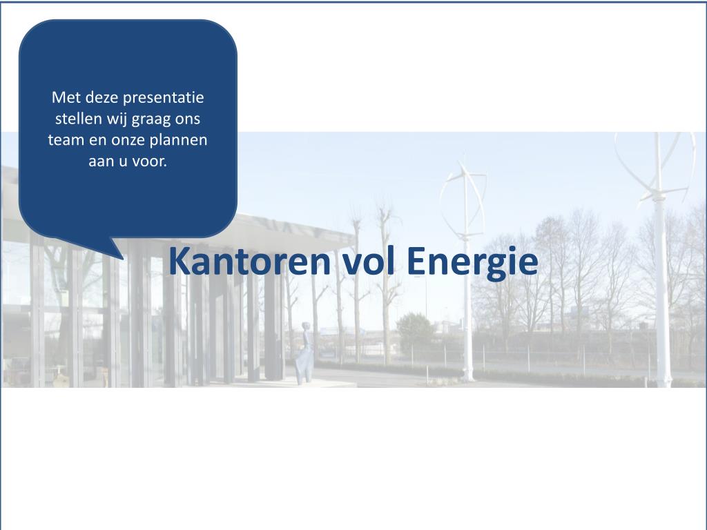 Met deze presentatie stellen wij graag ons team en onze plannen aan u voor. Kantoren vol Energie