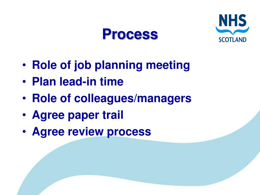 Process • Role of job planning meeting • Plan lead-in time • Role of colleagues/managers • Agree paper trail • Agree review process