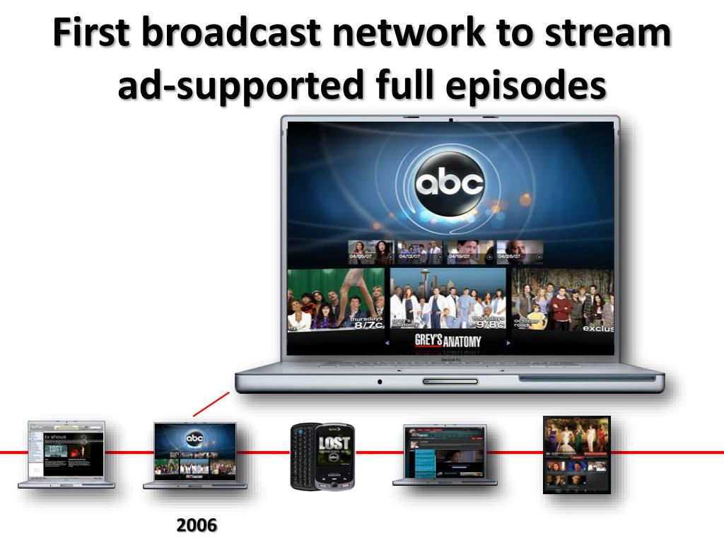First broadcast network to offer full episodes on demand on a mobile platform 2005 2007