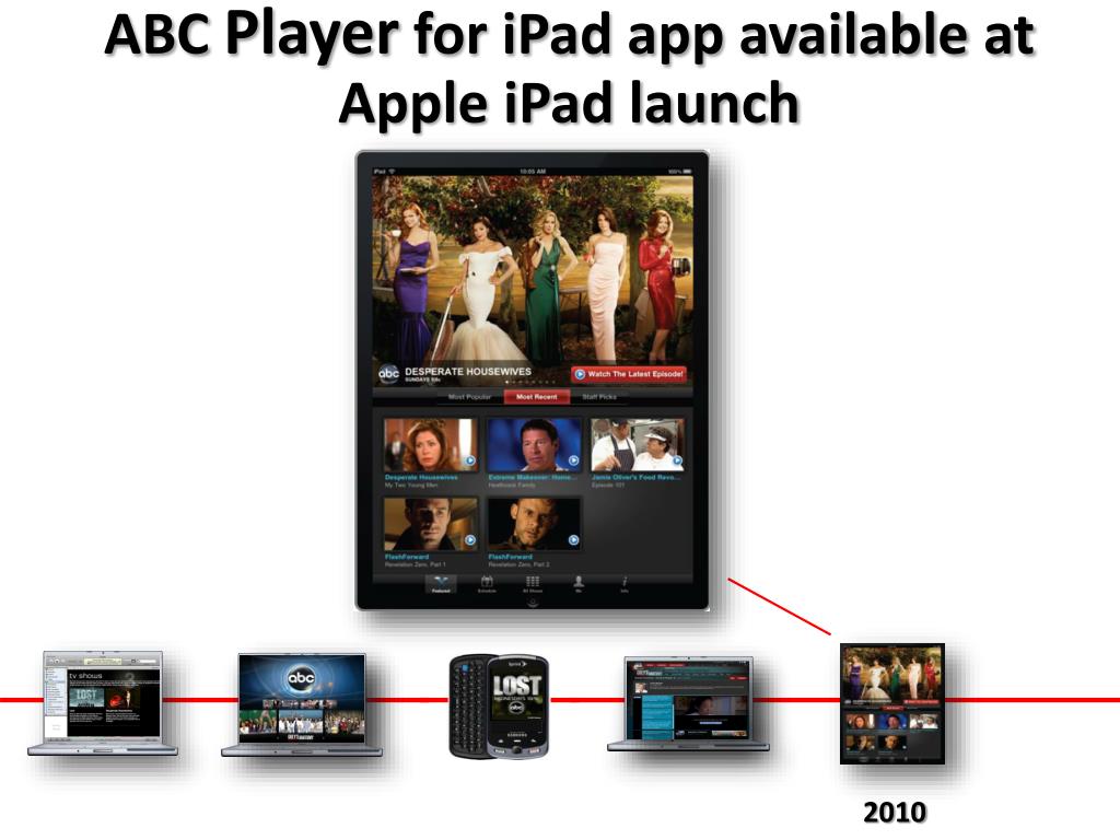 1M+ downloads • 10M+ episode starts “ABC turned out a phenomenal app for the iPad…” - Steve Jobs