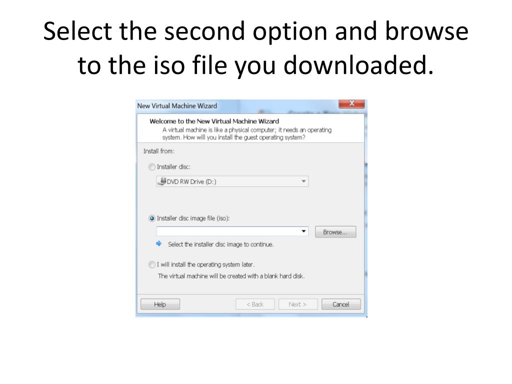 Select the second option and browse to the iso file you downloaded.