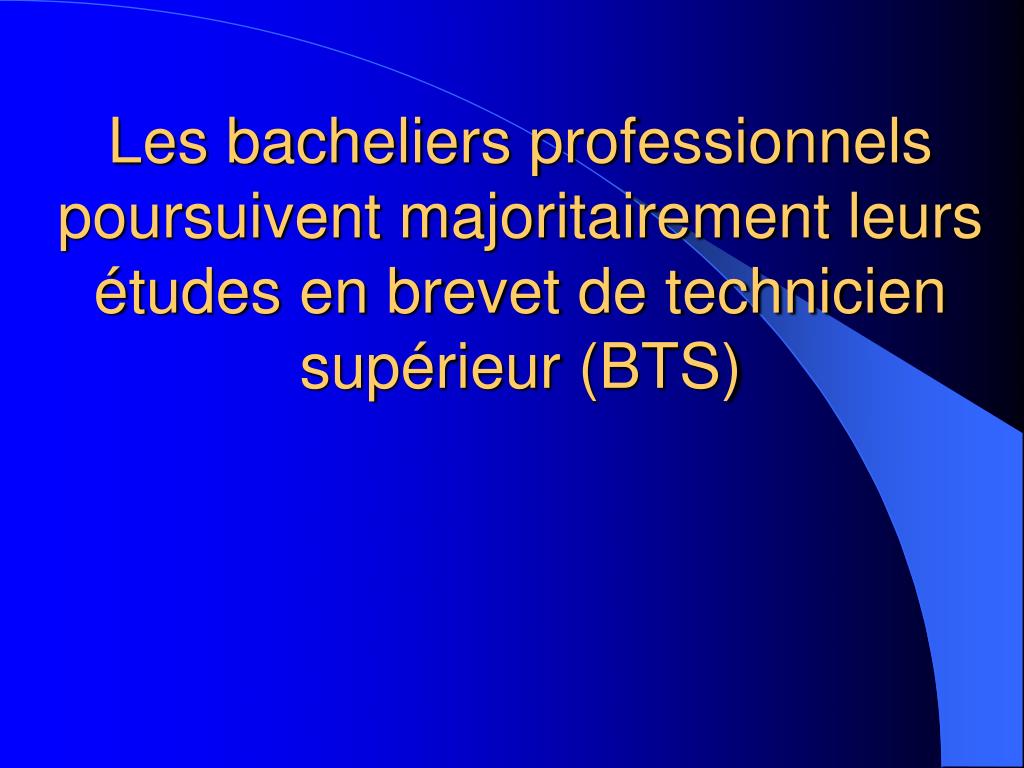 Les bacheliers professionnels poursuivent majoritairement leurs études en brevet de technicien supérieur (BTS)