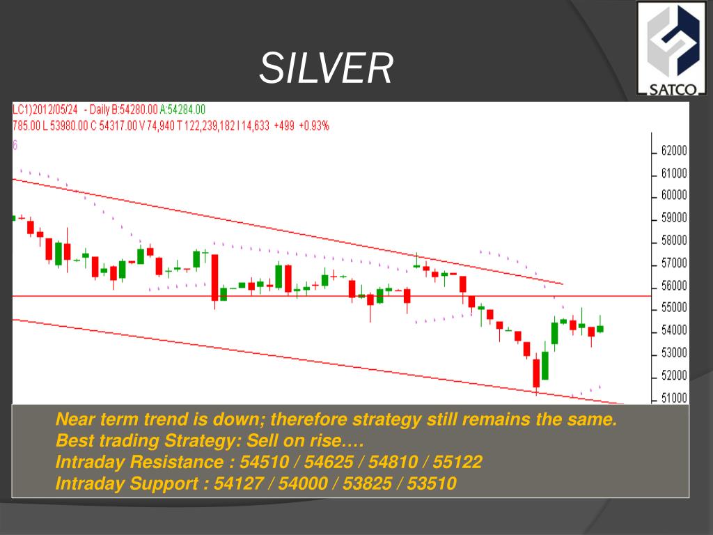 SILVER • Near term trend is down; therefore strategy still remains the same. • Best trading Strategy: Sell on rise…. • Intraday Resistance : 54510 / 54625 / 54810 / 55122 • Intraday Support : 54127 / 54000 / 53825 / 53510