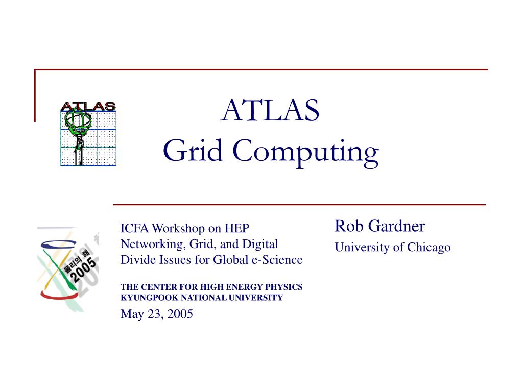 ATLASGrid Computing ICFA Workshop on HEP Networking, Grid, and Digital Divide Issues for Global e-Science THE CENTER FOR HIGH ENERGY PHYSICSKYUNGPOOK NATIONAL UNIVERSITY May 23, 2005 Rob Gardner University of Chicago