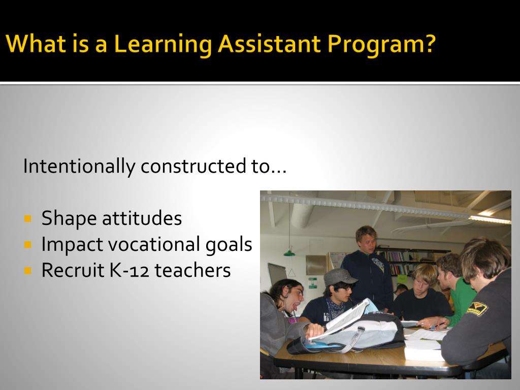 What is a Learning Assistant Program? Intentionally constructed to… • Shape attitudes • Impact vocational goals • Recruit K-12 teachers