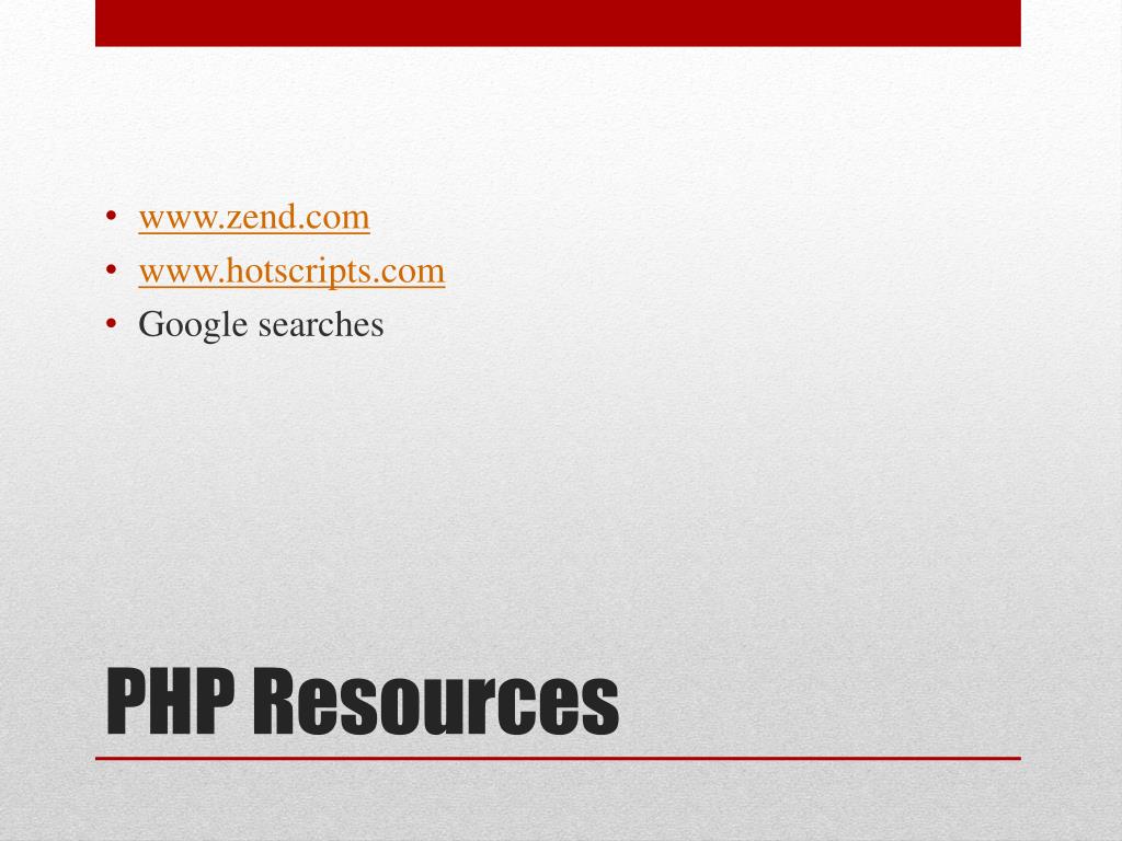 www.zend.com • www.hotscripts.com • Google searches PHP Resources