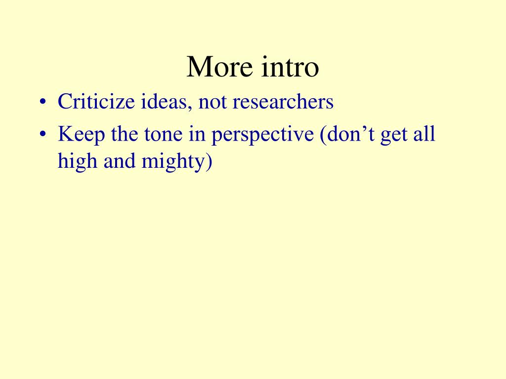 More intro Criticize ideas, not researchers Keep the tone in perspective (don’t get all high and mighty)