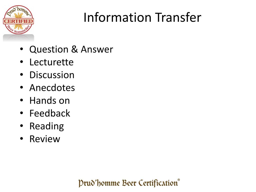 Prud’homme Beer Certification® Beer Sommelier. Effective Facilitation Skills. Requirements. Facilitation is a multi-faceted approach to education It requires many different skills It requires the ability to read an audience. Facilitation vs. Training. Facilitators