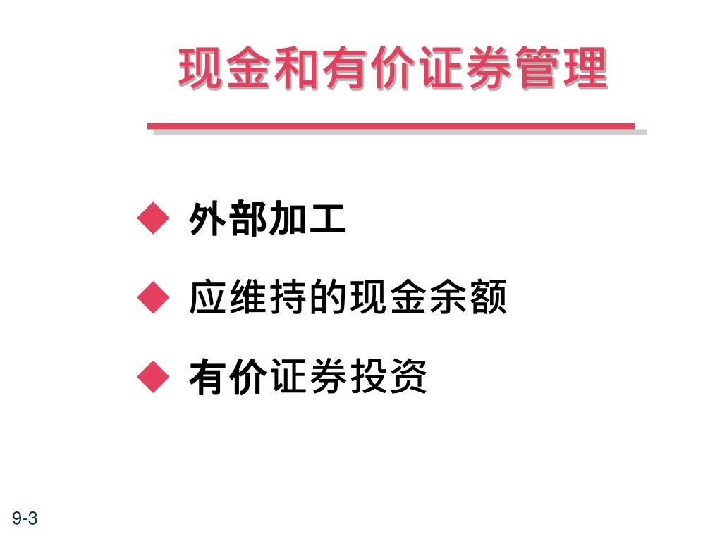 现金和有价证券管理 • 外部加工 • 应维持的现金余额 • 有价证券投资