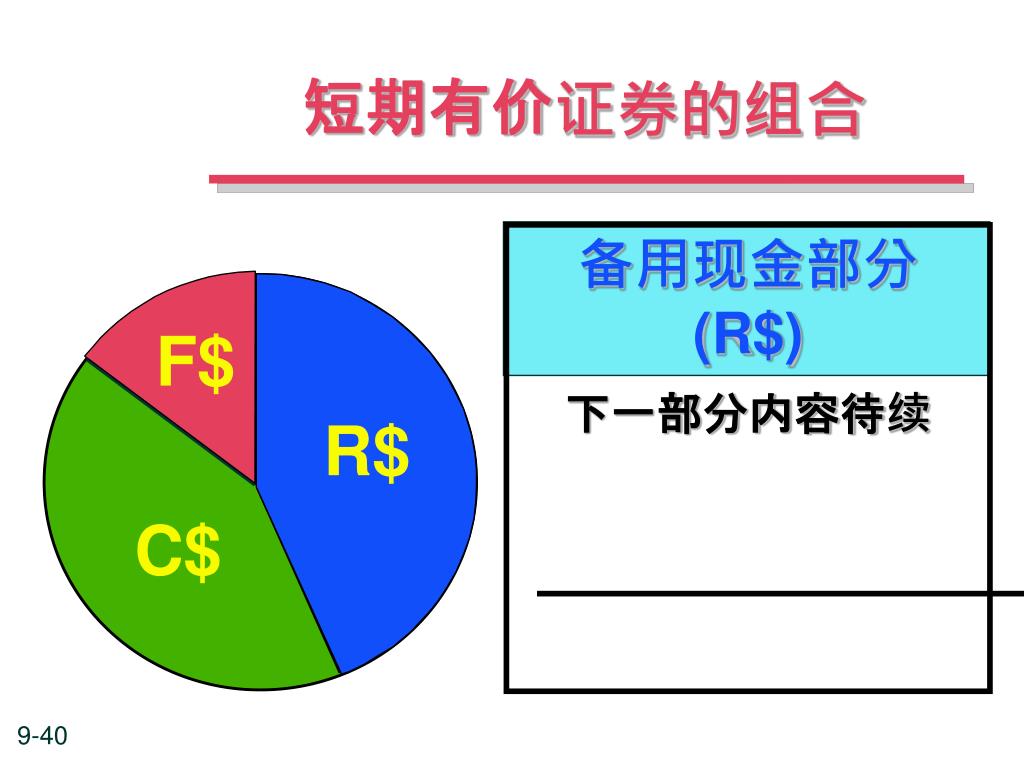 短期有价证券的组合 备用现金部分 (R$) 下一部分内容待续 F$ R$ C$