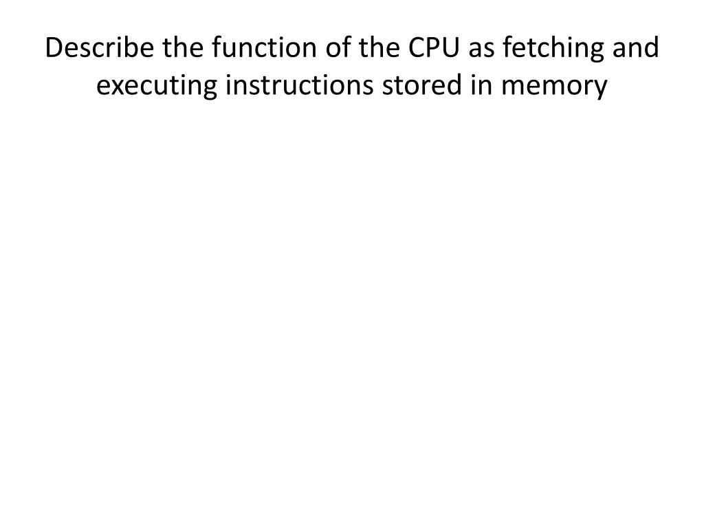 Describe the function of the CPU as fetching and executing instructions stored in memory