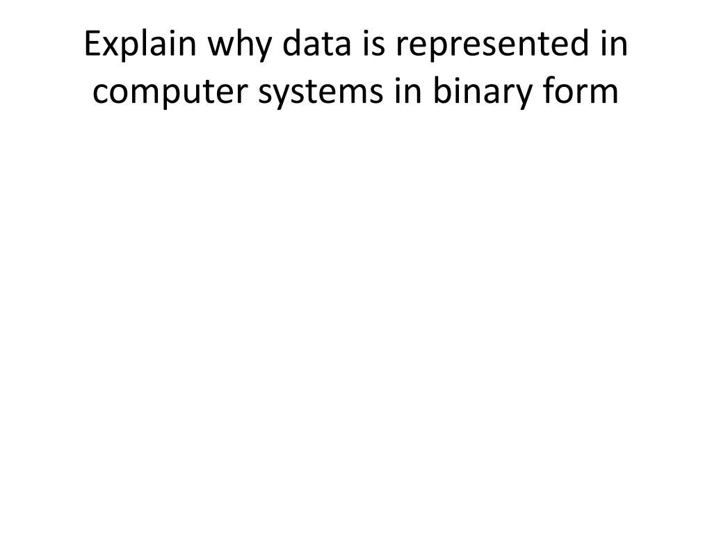 Explain why data is represented in computer systems in binary form