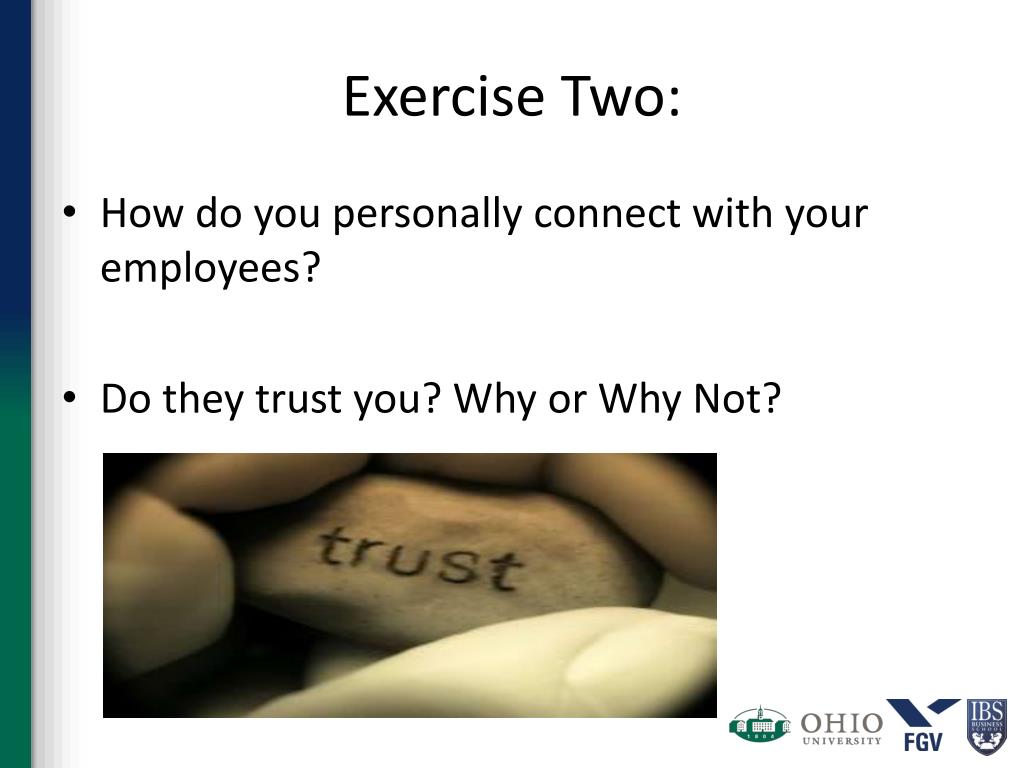 Exercise Two: • How do you personally connect with your employees? • Do they trust you? Why or Why Not?