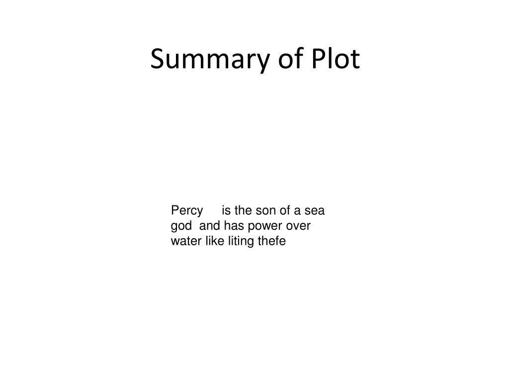 Summary of Plot Percy is the son of a sea god and has power over water like liting thefe