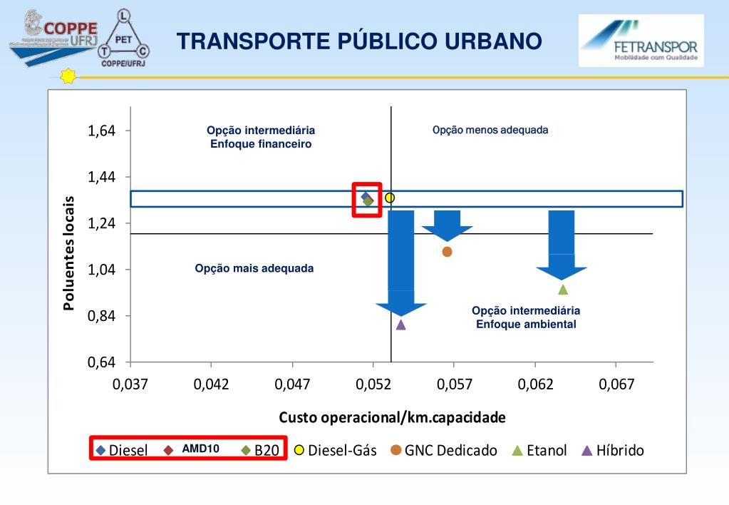 TRANSPORTE PÚBLICO URBANO Opção menos adequada Opção intermediária Enfoque financeiro Padron Diesel Opção mais adequada Opção intermediária Enfoque ambiental AMD10