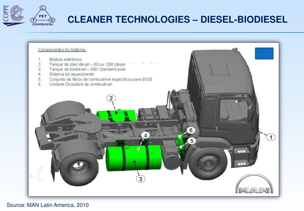 CLEANER TECHNOLOGIES – DIESEL-BIODIESEL Source: MAN Latin America, 2010