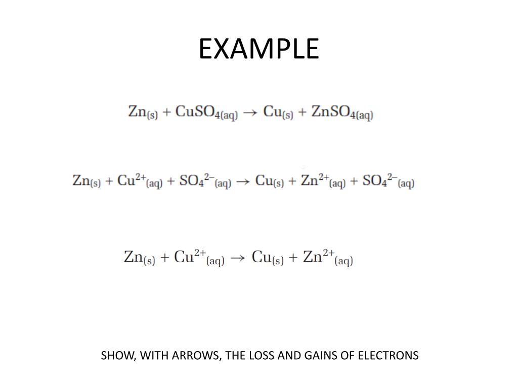 EXAMPLE SHOW, WITH ARROWS, THE LOSS AND GAINS OF ELECTRONS