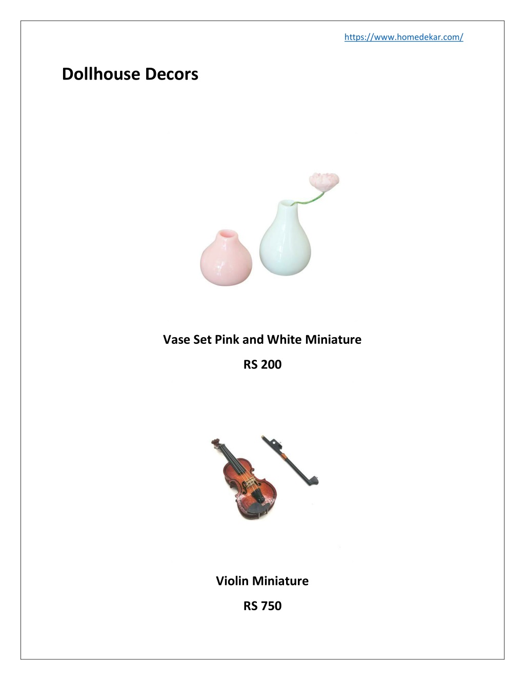 https://www.homedekar.com/ Dollhouse Decors Vase Set Pink and White Miniature RS 200 Violin Miniature RS 750
