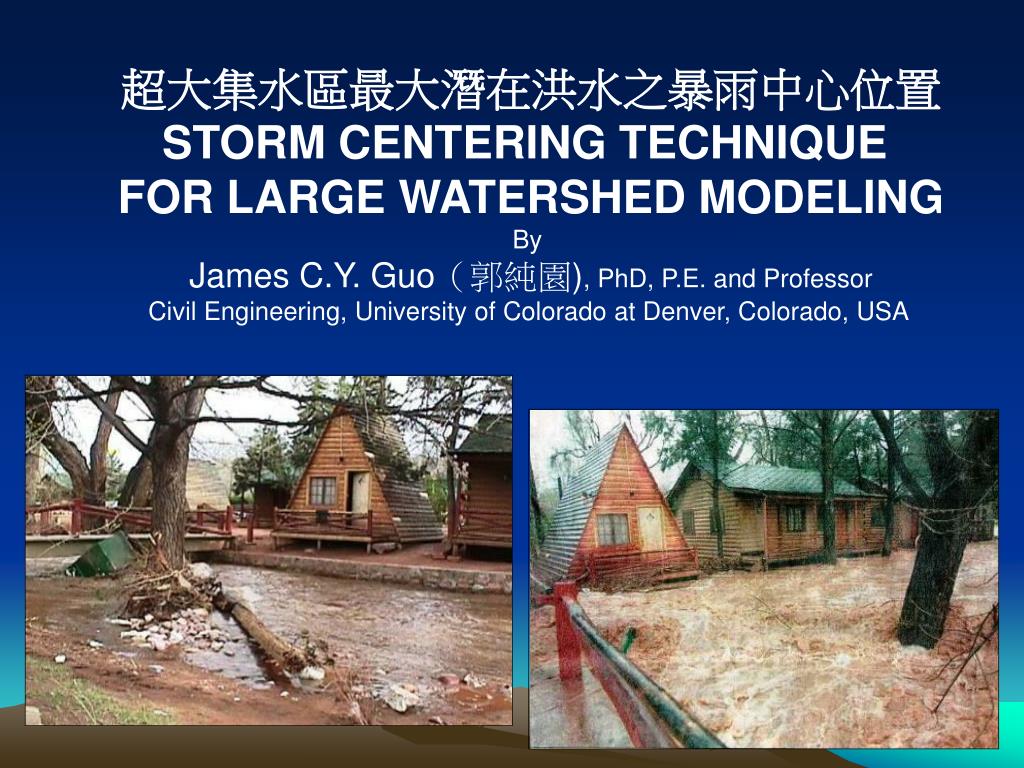 超大集水區最大潛在洪水之暴雨中心位置 STORM CENTERING TECHNIQUE FOR LARGE WATERSHED MODELING By James C.Y. Guo(郭純園), PhD, P.E. and Professor Civil Engineering, University of Colorado at Denver, Colorado, USA