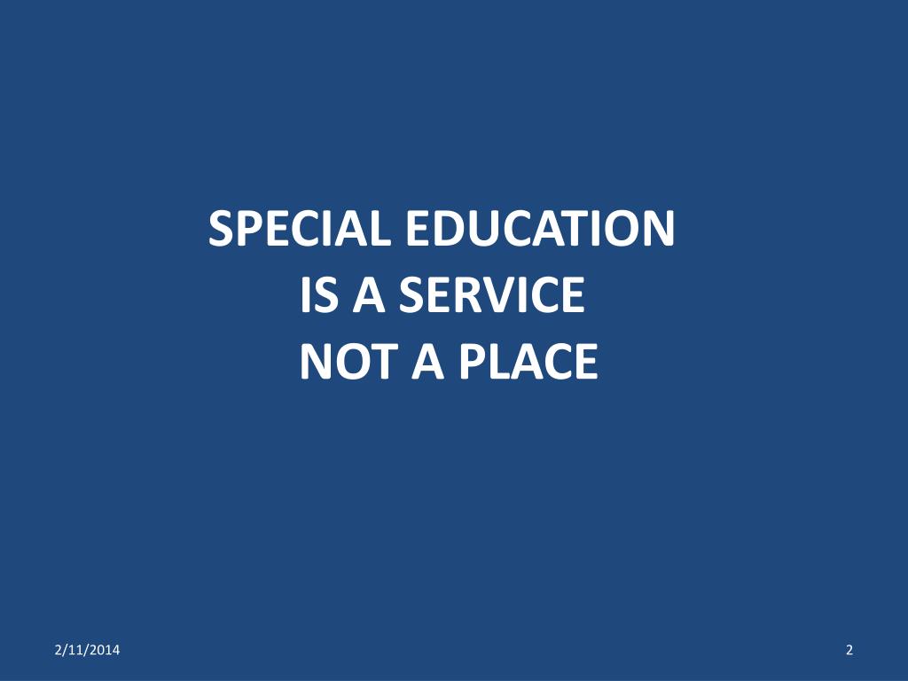 SPECIAL EDUCATION IS A SERVICE NOT A PLACE