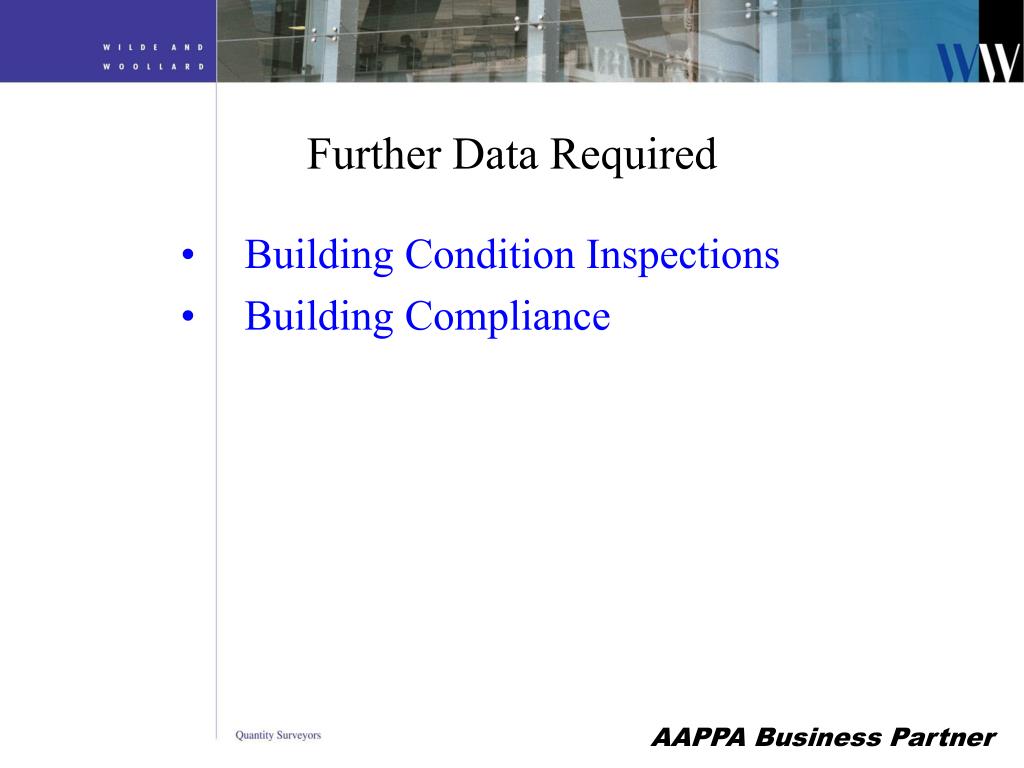 Further Data Required • Building Condition Inspections • Building Compliance AAPPA Business Partner