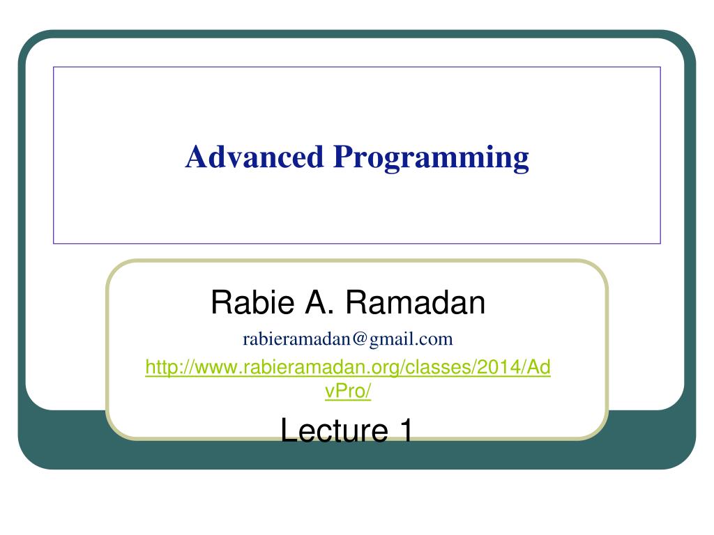 Advanced Programming Rabie A. Ramadan rabieramadan@gmail.com http://www.rabieramadan.org/classes/2014/AdvPro/ Lecture 1