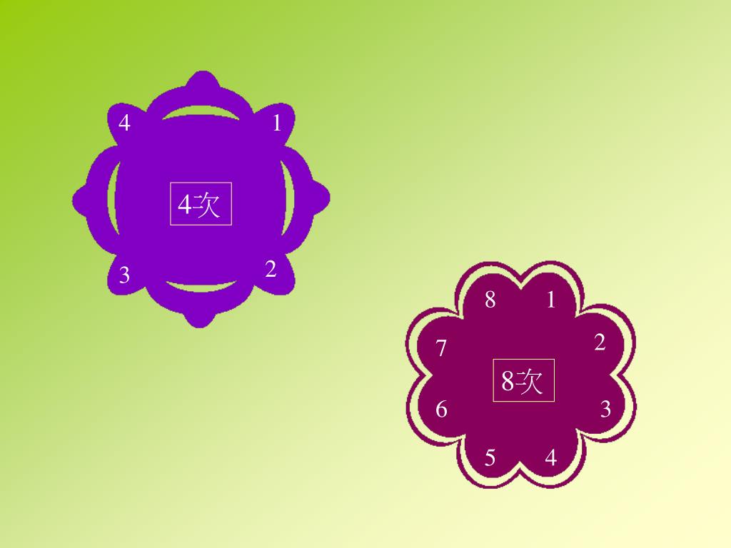 把這個圖形旋轉一周,會重疊多少次?. 4 次. 旋轉 90 o 1 次. 旋轉 180 o 2 次. 旋轉 270 o 3 次. 旋轉 360 o 4 次. 1. 4. 2. 1. 1. 3. 1. 1. 6. 2. 5. 3. 4. 6 次. 1. 5 次. 1. 1. 1 次. 1. 1. 2 次. 4 次. 1. 3 次. 4. 1. 4 次. 2. 3. 8. 1. 2. 7. 8 次. 6. 3. 5. 4.